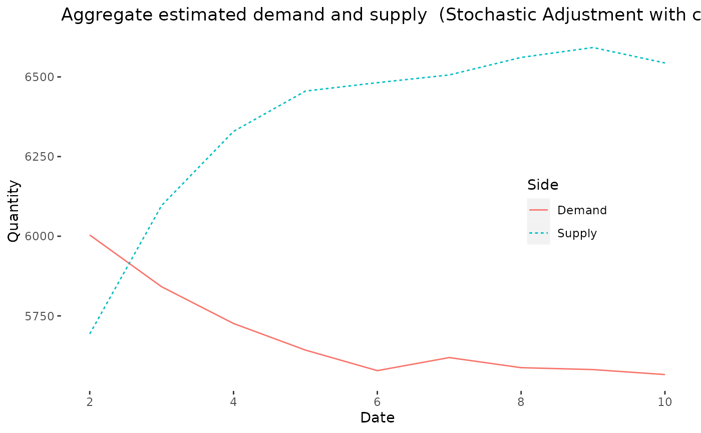 "Aggregate estimated demand and supply (", model_name(fit), ")"